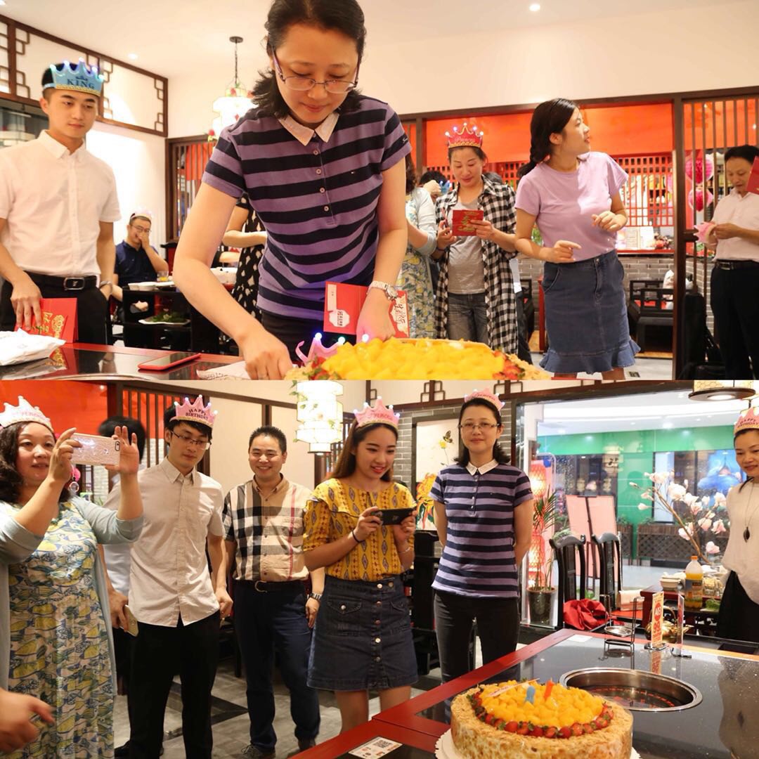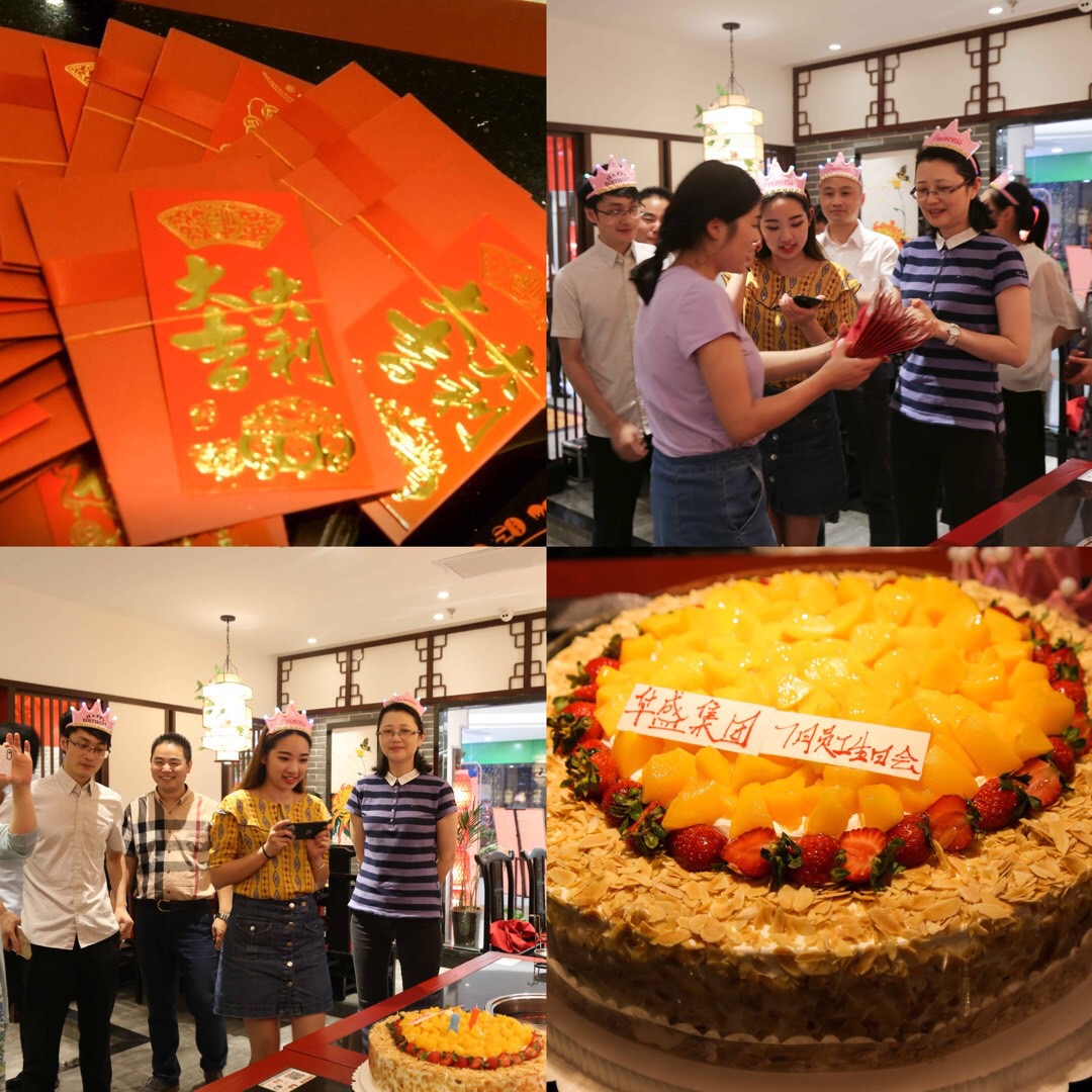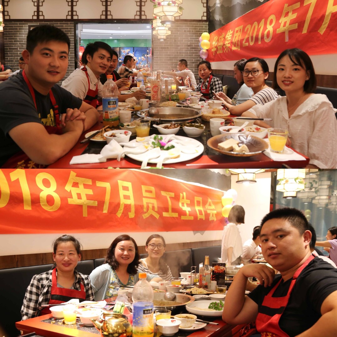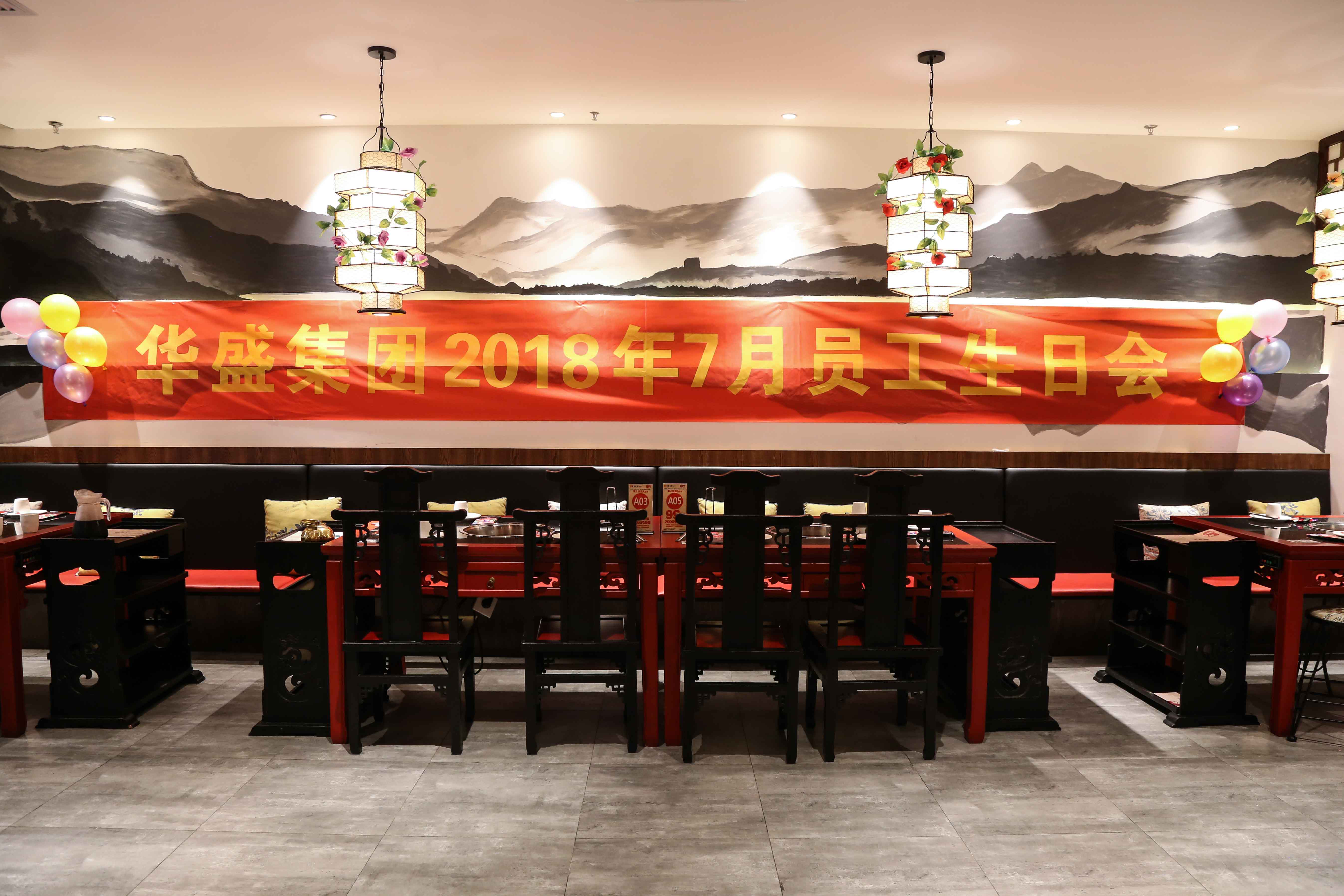 时方七月,绿树阴浓,水面风来,蝉鸣聒耳。在华盛BBB商业广场“香天下”火锅店中传出一片欢声笑语。为了增加员工归属感,推动公司企业文化建设,让每位员工切实感受到华盛集团大家庭的温暖,2018年7月28日上午,华盛集团七月员工生日会在热闹欢乐的气氛中举办。七月份生日的员工们同聚一堂,共享甜蜜和快乐。