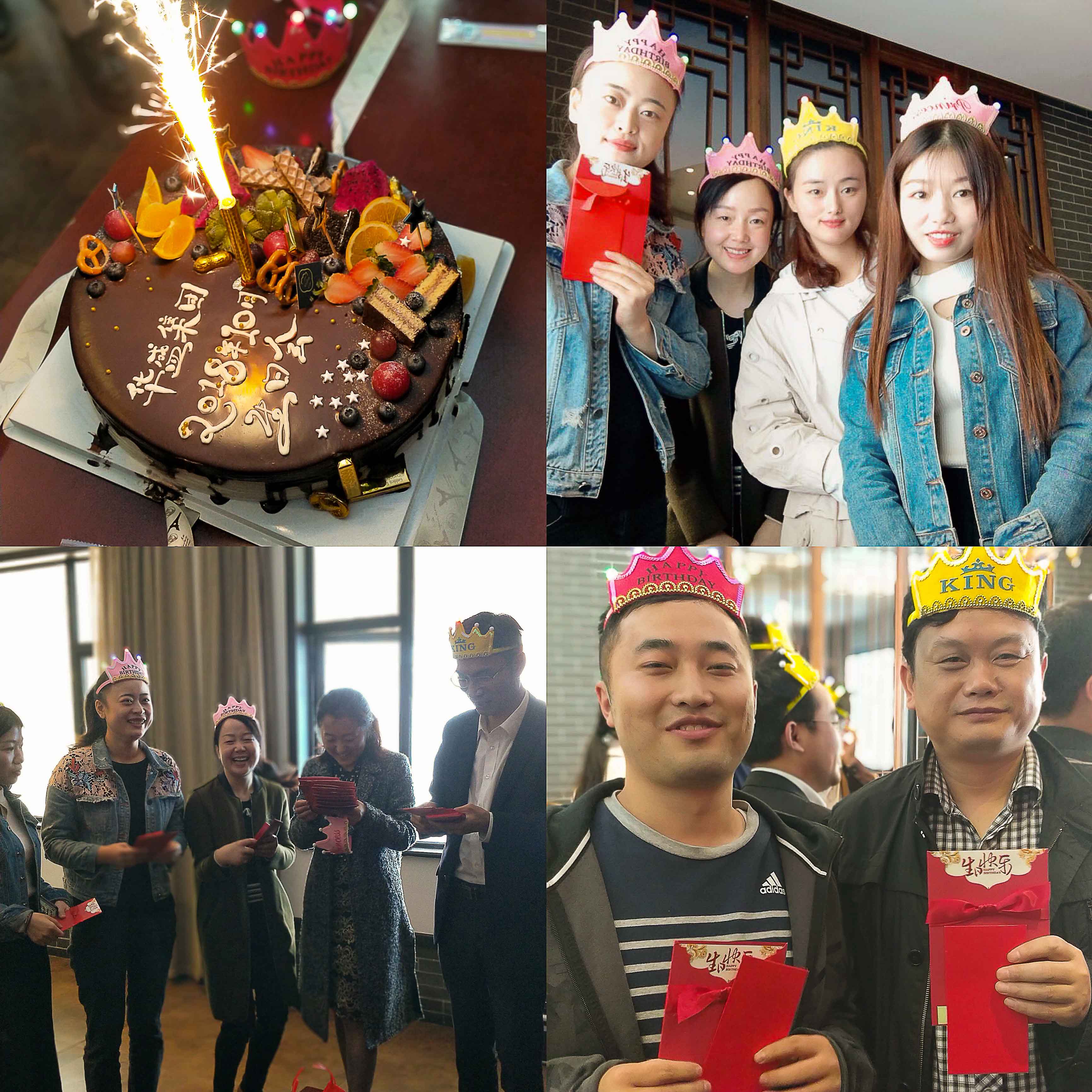 集团营销总监林维良和总经办主任王莹莹为寿星们送上生日红包和祝福贺卡,并送上生日的祝福与问候,祝愿寿星们梦想成真、工作顺利,同时也感谢大家在自己的工作岗位上认真负责,兢兢业业。聚会不仅给所有生日的员工准备了丰盛的美食,还特地定制了巧克力慕斯大蛋糕,让我们在华盛集团感受到了家一样的温暖和欢乐!
