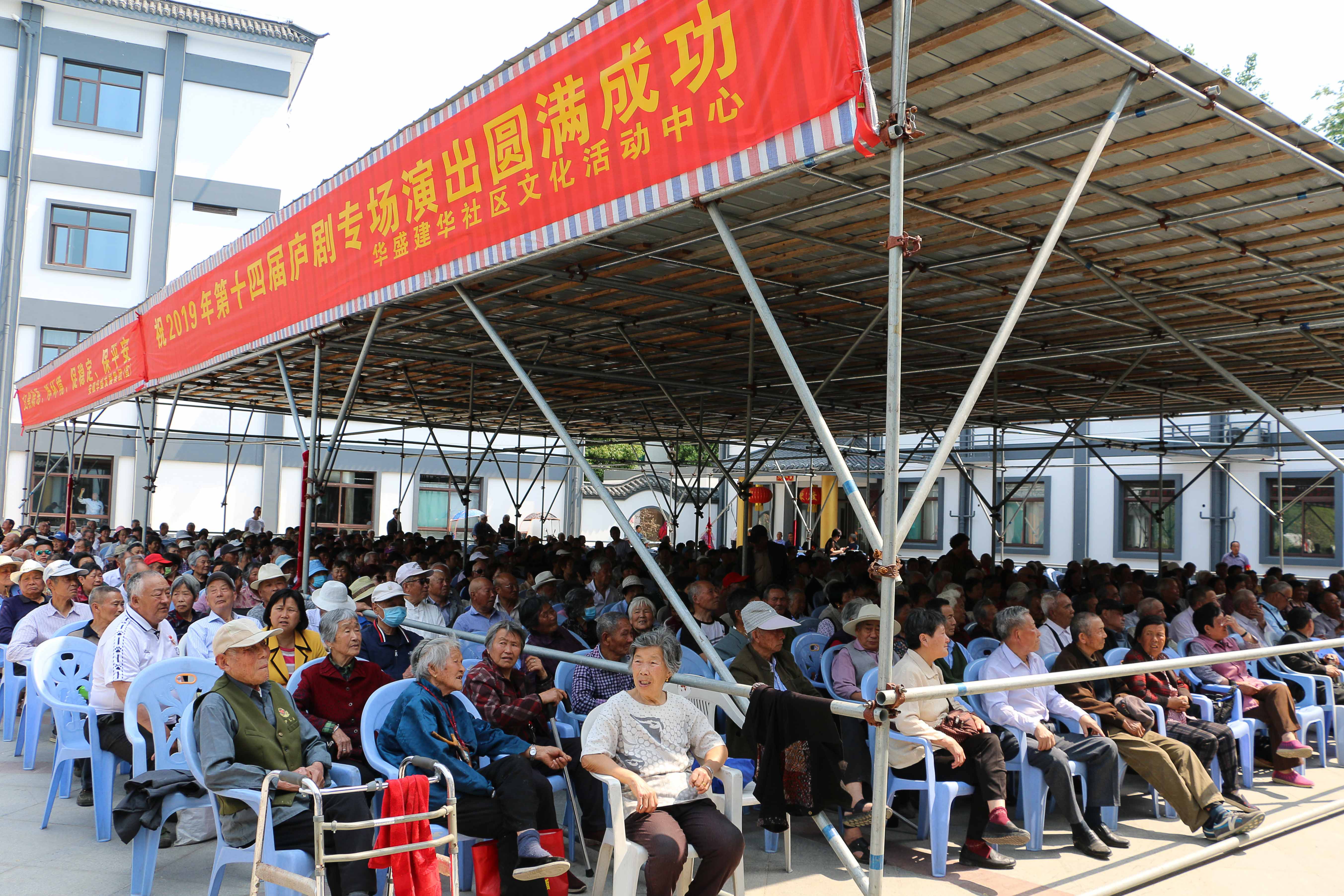戏歌传新韵,开启新征程。华盛集团董事长王汝仙先生对家乡感情深厚,为回报家乡人民,丰富建华社区及周边村民的业余文化生活,华盛集团王董事长特地邀请肥东县青年庐剧艺术团著名庐剧表演艺术家刘长芬老师带领她的艺术团在建华社区文化活动中心大舞台登台献艺。演出在喜庆的开场曲目《打金枝全本》中拉开序幕,演出活动现场,很多观众带着家人一同观看演出,老人带着小孩,媳妇陪着婆婆,一派其乐融融的景象。