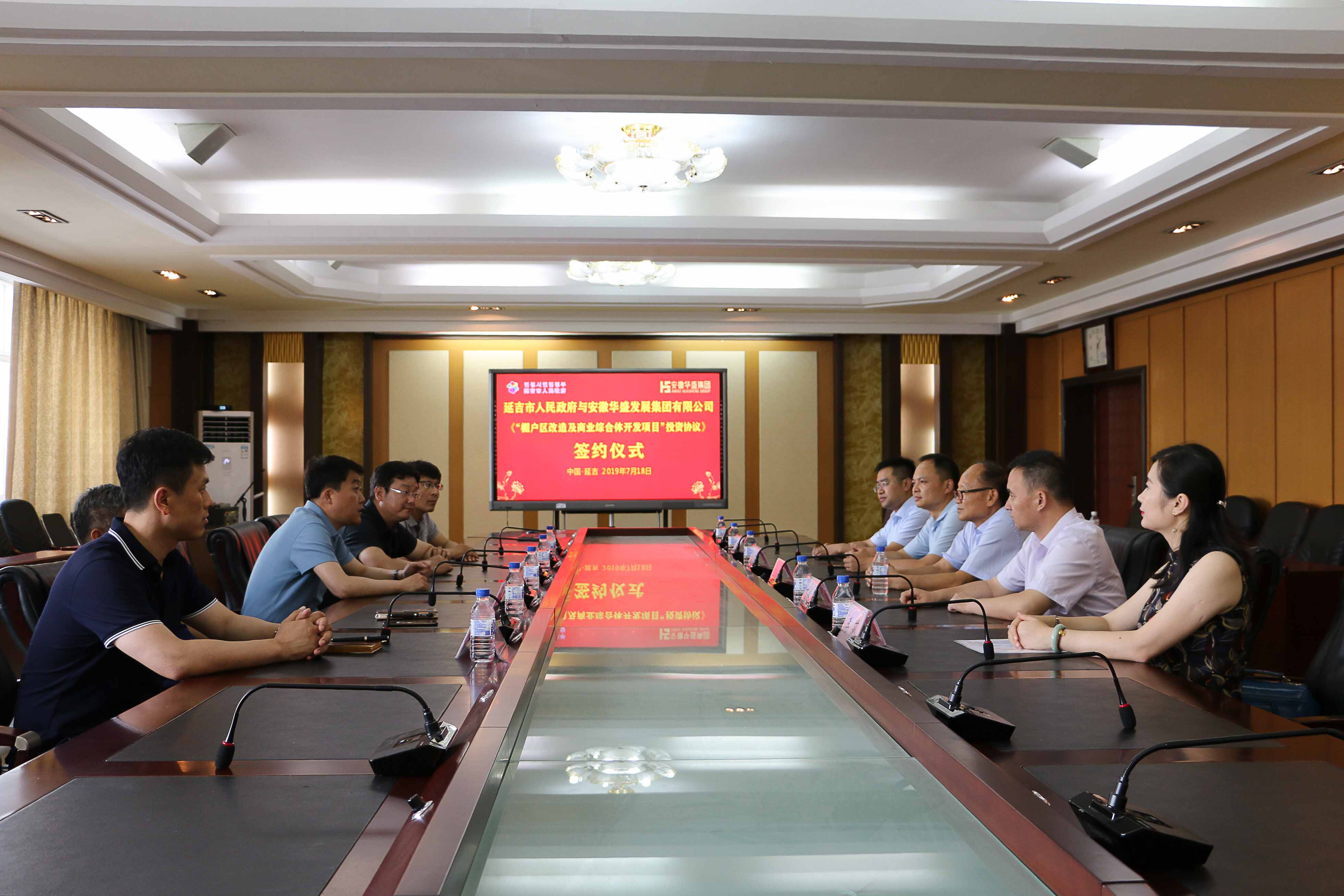 2019年7月18日下午,安徽华盛发展集团有限公司与延吉市人民政府关于“棚户区改造及商业综合体开发项目”招商投资协议签约仪式在延吉市政府大楼三楼会议室举行。延吉市副市长黄炳昊,财政局局长李万洙,自然资源与规划局局长金峰,棚改局局长曹巍,征收局局长刘辉等政府领导和安徽华盛发展集团有限公司董事长王汝仙,安徽华盛集团总裁丁长亮,安徽华盛商业管理公司董事长王辉,集团副总裁李莉等高管共同出席了本次签约仪式。