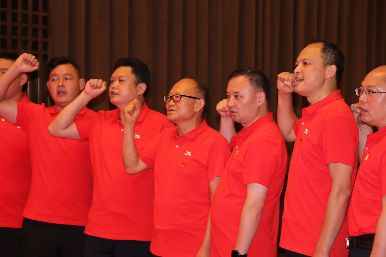 随着《没有共产党就没有新中国》歌声响起,全体党员饱含深情,共同讴歌党的光辉历程。接着,党员们合唱《没有共产党就没有新中国》、《大海航行靠舵手》等经典红歌,展现了全体党员们对党的热爱,也唱出了华盛集团党组织的活力。大家高亢的热情迅速点燃全场氛围,阵阵歌声汇聚成对党忠诚、热爱祖国的豪迈誓言,更加坚定了党员们听党话、跟党走、感党恩的决心。