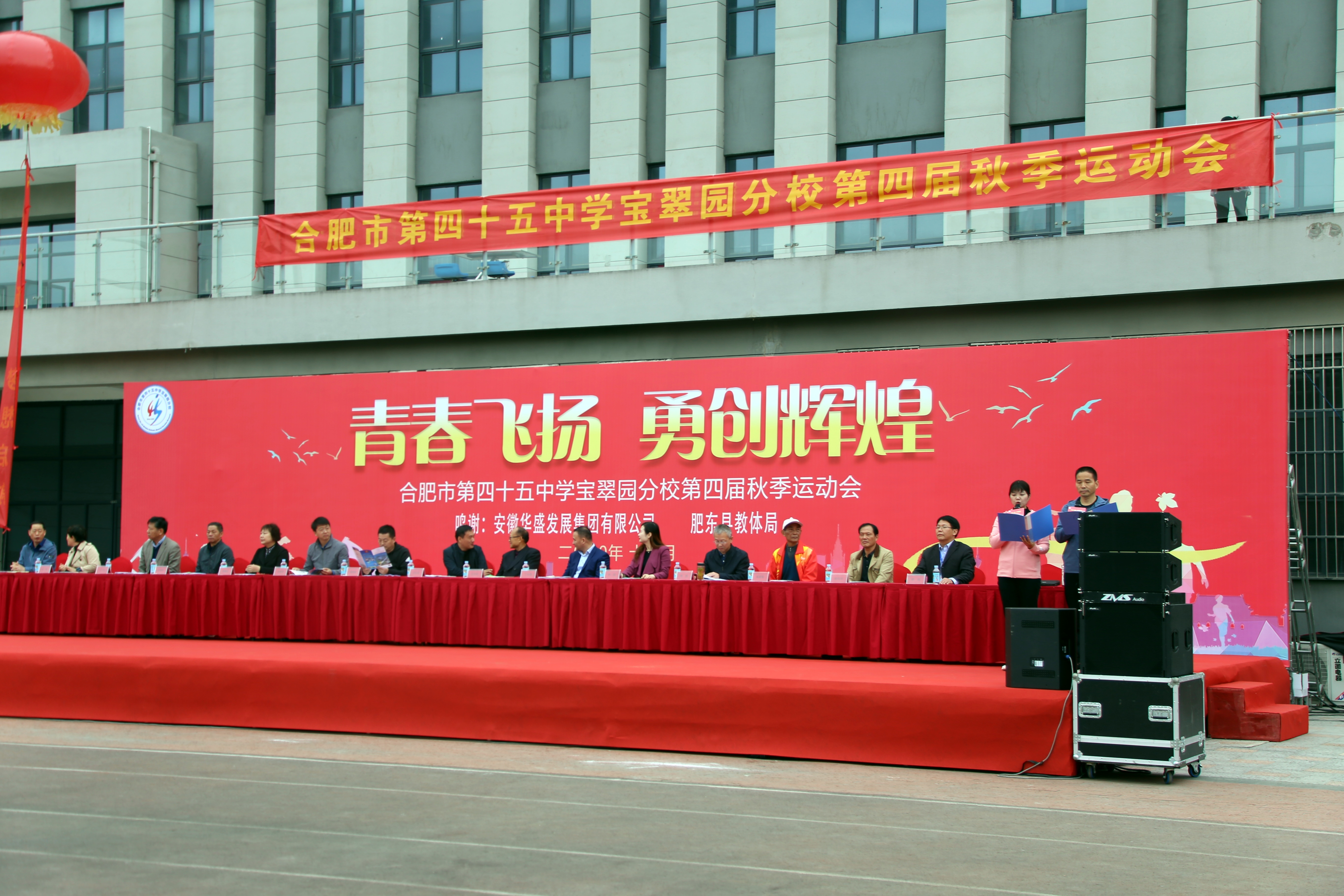 2017年4月,宝翠园校区初中教学楼工程封顶大吉。在此之后,作为学校的名誉校长,王汝仙先生始终关心着全体师生的学习生活,为了给家乡的孩子提供更为优异的教育资源,把合肥市第四十五中(宝翠园分校)做大做强,决定由华盛集团捐资设立华盛励志奖学金,奖励在校就读的优秀学子,希望能借此激励东城的莘莘学子继续努力学习,奋发向上。本次运动会,王汝仙校长无偿捐助10万元,助力宝翠园校区的学生德智体美劳全面发展。
