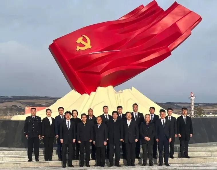 会后,王汝仙董事长与参会的主要领导和嘉宾在朝阳川镇红色小镇鲜红的党旗下共同合影留念。
