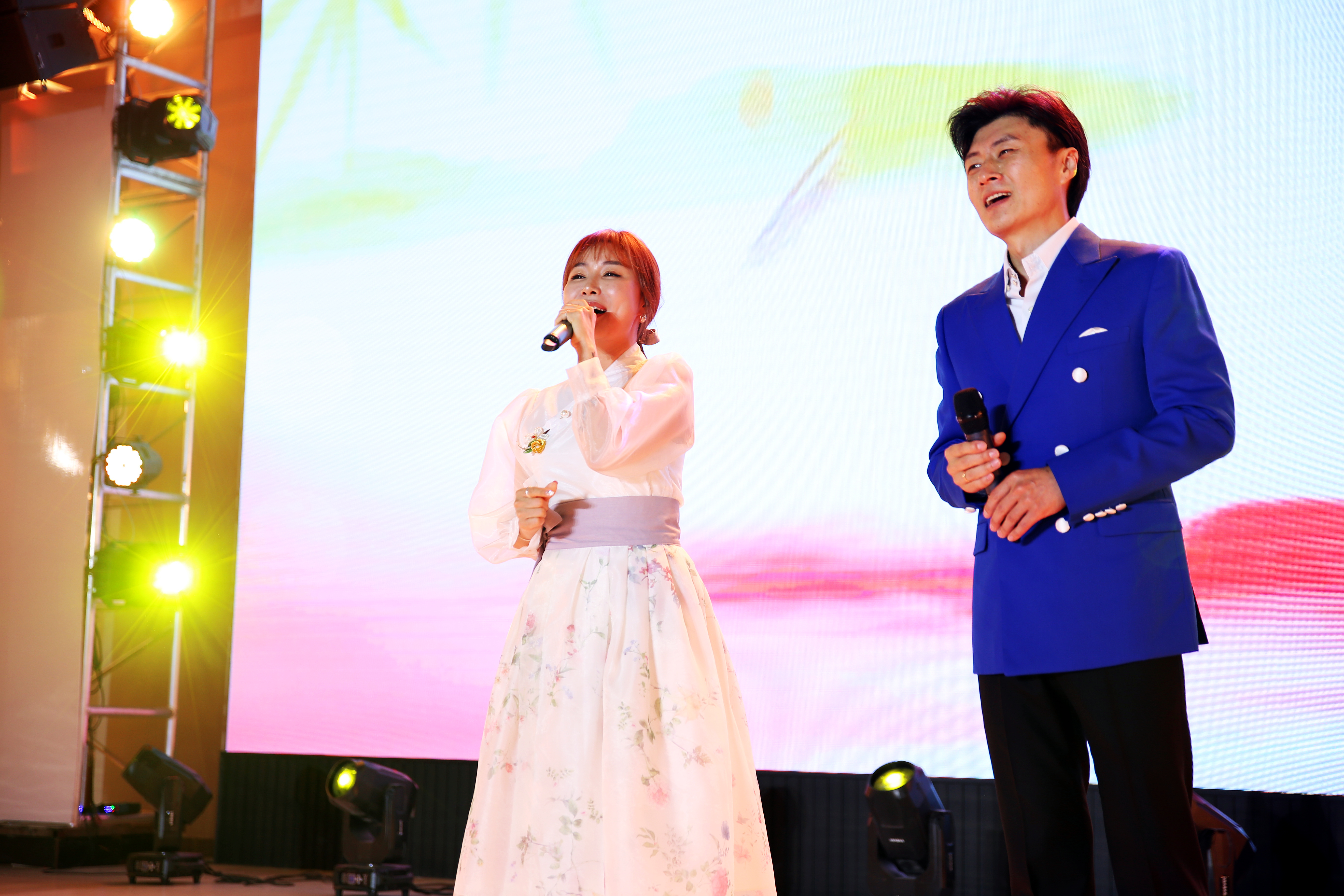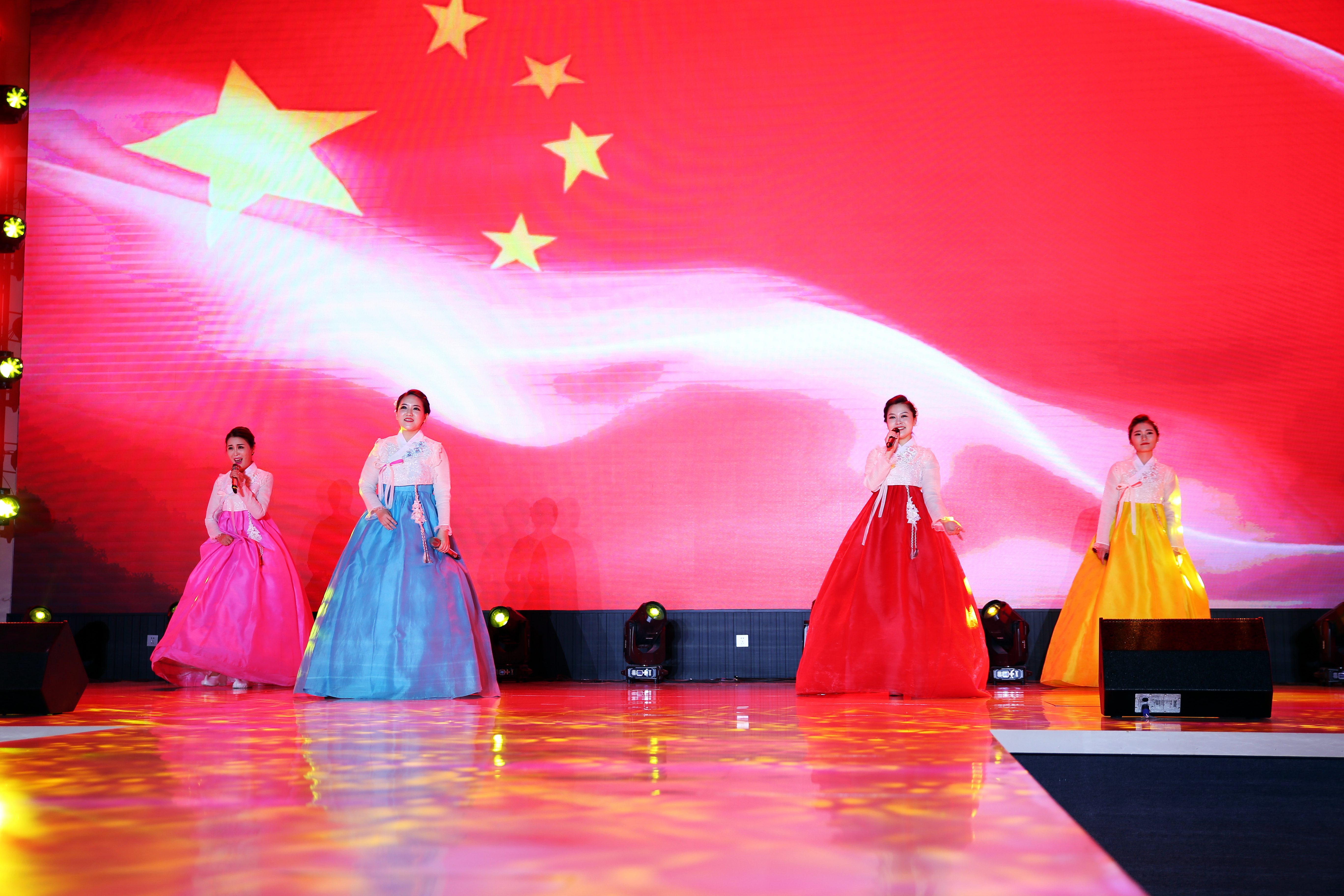 接着,延边歌舞团和UN舞蹈团的艺术家们为我们带来了各种精彩的艺术表演。这些节目分别是女声四人唱《新春的祝福》、《红旗飘飘》、舞蹈《难忘的那一天》、男声独唱《飞得更高》、《图们江赞歌》、男女二人唱《神话》、长鼓舞独舞《长鼓舞》、现代舞 《冠军》、女声独唱《欢腾的海兰江》。