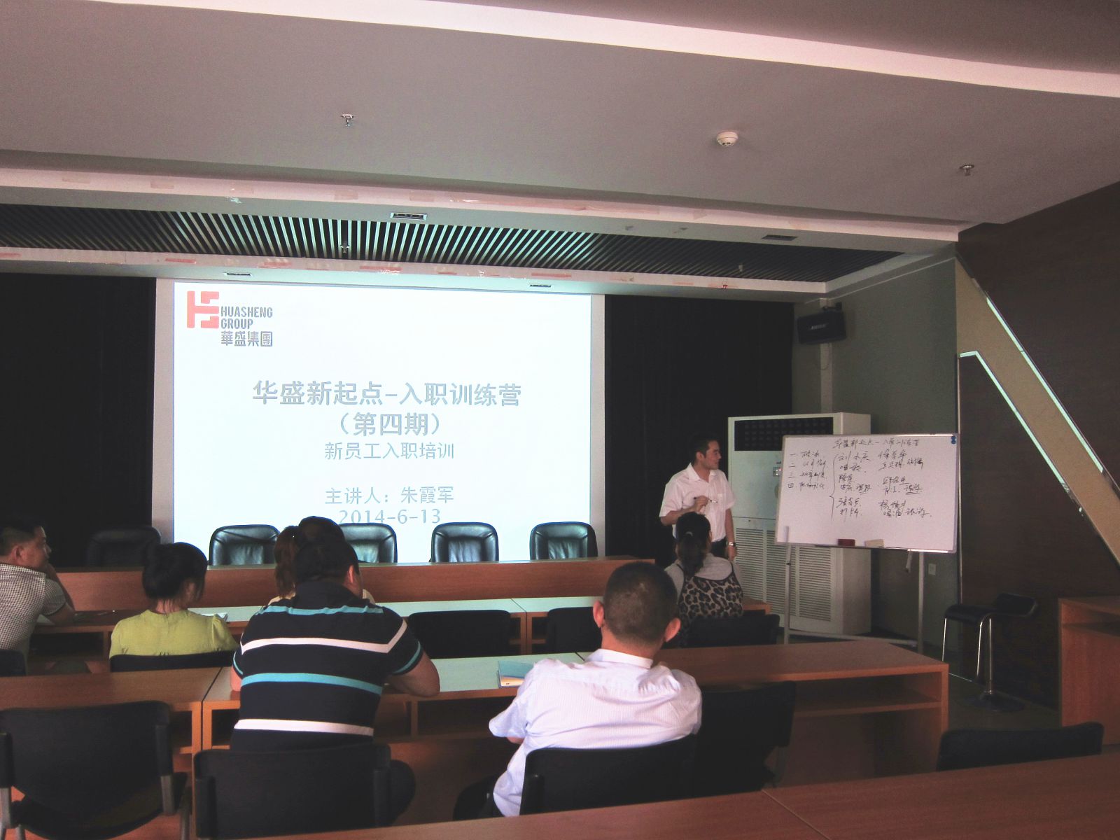 “华盛新起点-入职训练营”第四届新员工入职培训于2014年6月13日在集团多媒体室召开。本次培训由集团公司人力资源经理朱霞军主讲,参训人员为自5月5日入职的7名新员工。入职培训围绕公司乐动手机官网(上海)有限公司、企业文化、行政规范和人力资源相关规范等内容进行了介绍,并以公司2013年度通过评审并印发的《员工手册》为基础,重点对员工的入离职、考勤、薪酬、福利、培训发展基础制度作出详细解释。